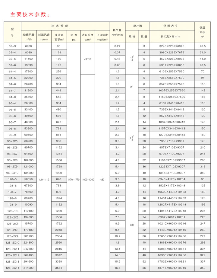 結構特點 采用分室、箱式結構、脈沖閥用量少、壽命長,采用進口脈沖閥動作可達100萬次以上,并實現(xiàn)了不停機檢修。 外濾式,采用大口徑脈沖閥,高壓、小氣量脈沖清灰清灰強度高,需壓縮空氣(0.5一0.7Mpa)。 分室隔離清灰一離線清灰,清灰徹底、效果好,減少二次揚塵,阻力小、能耗低,濾袋平均壽命可達兩年以上。 換袋及檢修在頂部進行、干凈、方便、快捷。 程序控制器采用單片機或PLC控制,具有運行穩(wěn)定可靠,抗干擾性強等特點。PLC控制器可根據(jù)用戶要求配置,設計成具有與其它可分編程控制器以上位機聯(lián)網(wǎng)功能。 系列化設計,多種規(guī)格可滿足不同現(xiàn)場情況的處理需要。 設備總體結構緊湊合理,占地面積小。
